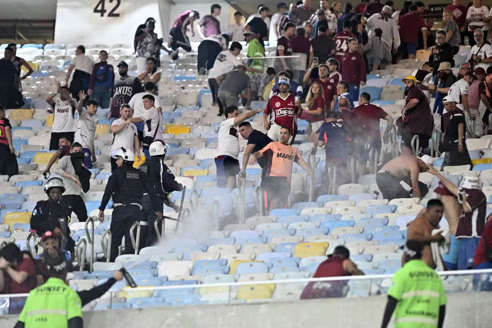 O jogo entre Fluminense e Lanús, pelas quartas de final da Copa Sul-Americana, foi marcado por cenas de confusão nas arquibancadas do Maracanã. Durante o intervalo, torcedores do clube argentino entraram em confronto com a Polícia Militar, o que atrasou a volta do segundo tempo em cerca de 30 minutos.