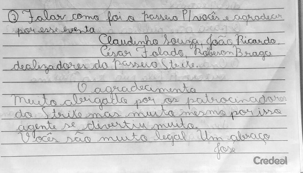 O sucesso da ação foi selado com a entrega de cartas de agradecimento emocionadas pelos próprios estudantes. Na correspondência, as crianças relataram que, para muitas delas, a oportunidade de visitar um local como o Strike 364 seria algo de difícil acesso no dia a dia.