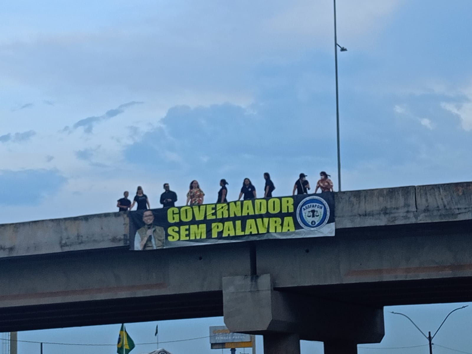 Na manhã desta segunda-feira, um grupo de esposas de policiais e bombeiros militares de Rondônia realizou um protesto em um viaduto de Porto Velho. Elas exibiram uma faixa com os dizeres “Governador sem palavra”, chamando a atenção de motoristas e pedestres que passavam pelo local.