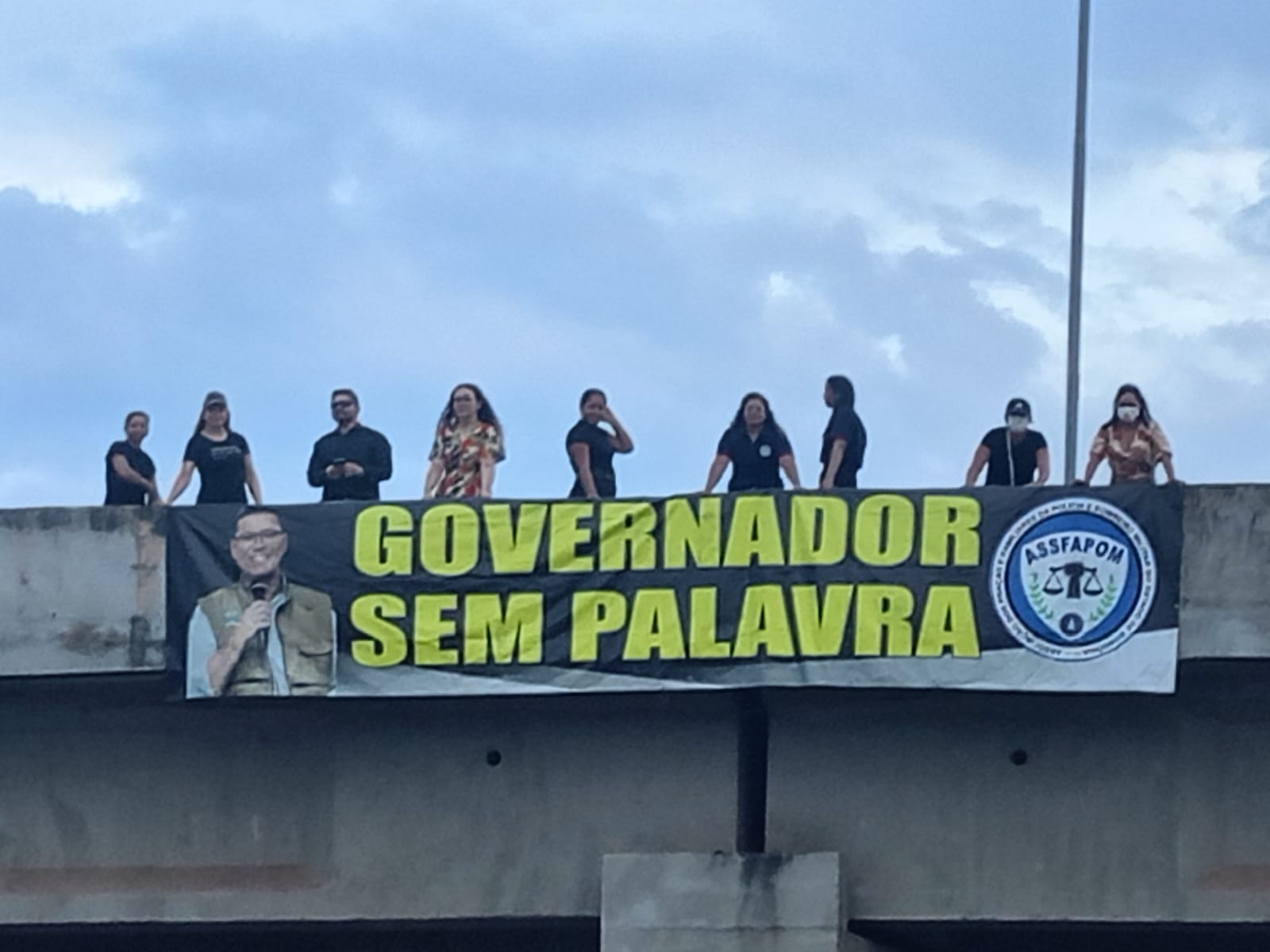 Na manhã desta segunda-feira, um grupo de esposas de policiais e bombeiros militares de Rondônia realizou um protesto em um viaduto de Porto Velho. Elas exibiram uma faixa com os dizeres “Governador sem palavra”, chamando a atenção de motoristas e pedestres que passavam pelo local.